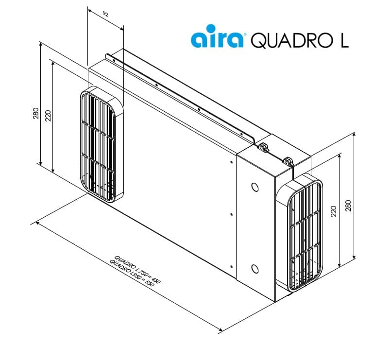 De Quadro-L 750 heeft een luchtverwerkingscapaciteit van 750 m³ per uur, wat voldoende is voor middel-grote tot grote keukenopstellingen en efficiënt de kooklucht en dampen verwerkt.